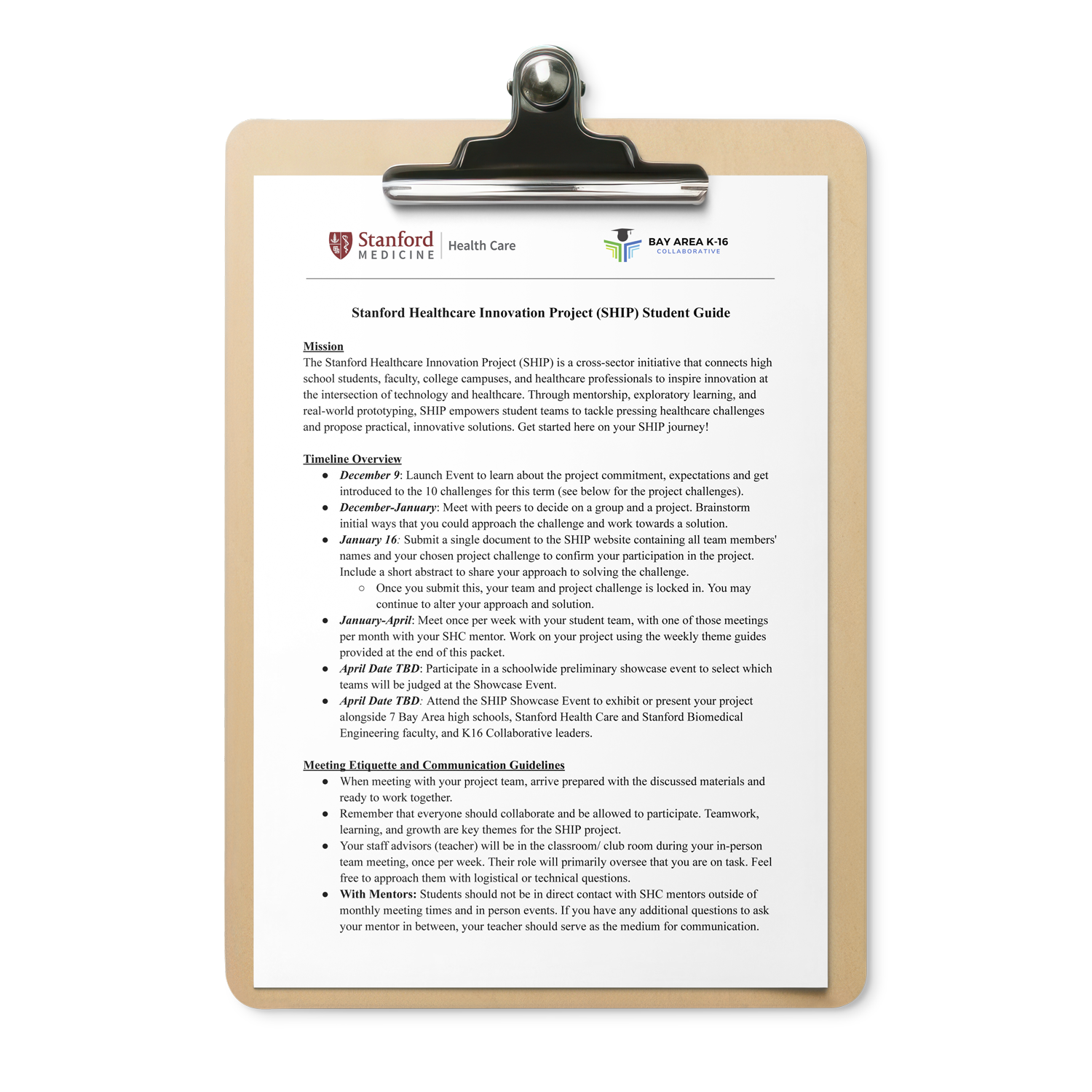 - Stanford to share project details and past examples