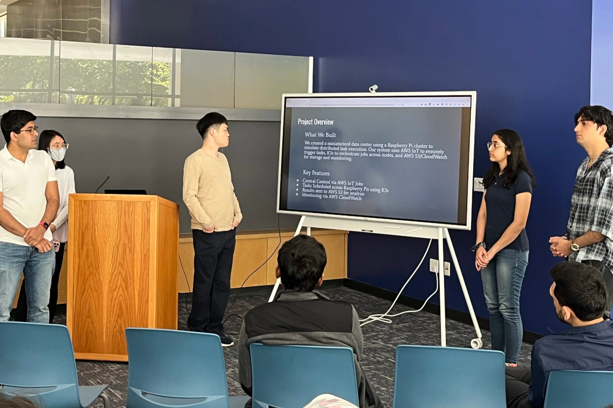 The semester concluded with a showcase at SJSU’s Dr. Martin Luther King Jr. Library, where students presented final deliverables to university and industry stakeholders. Representatives from AWS, TI, and Mainspring Energy attended in person, offering live feedback and reflecting on the growth they observed in student teams. The day also included rotating small group discussions and, vitally, student-employer networking time. For many students, it was their first time showcasing professional work to real employers. For the company representatives, it was a compelling opportunity to see student innovation in action - and, in some cases, identify potential interns or future hires.